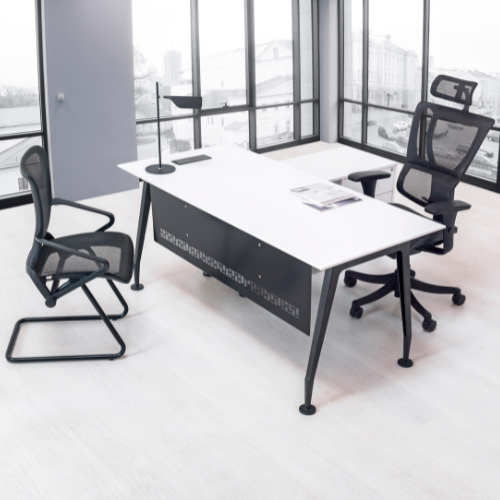 - Disponible en dos acabados, negro y cromo, que aportan un toque de sofisticación a cualquier entorno de oficina.
