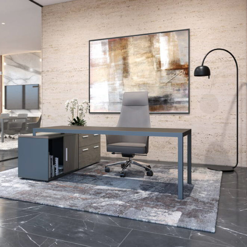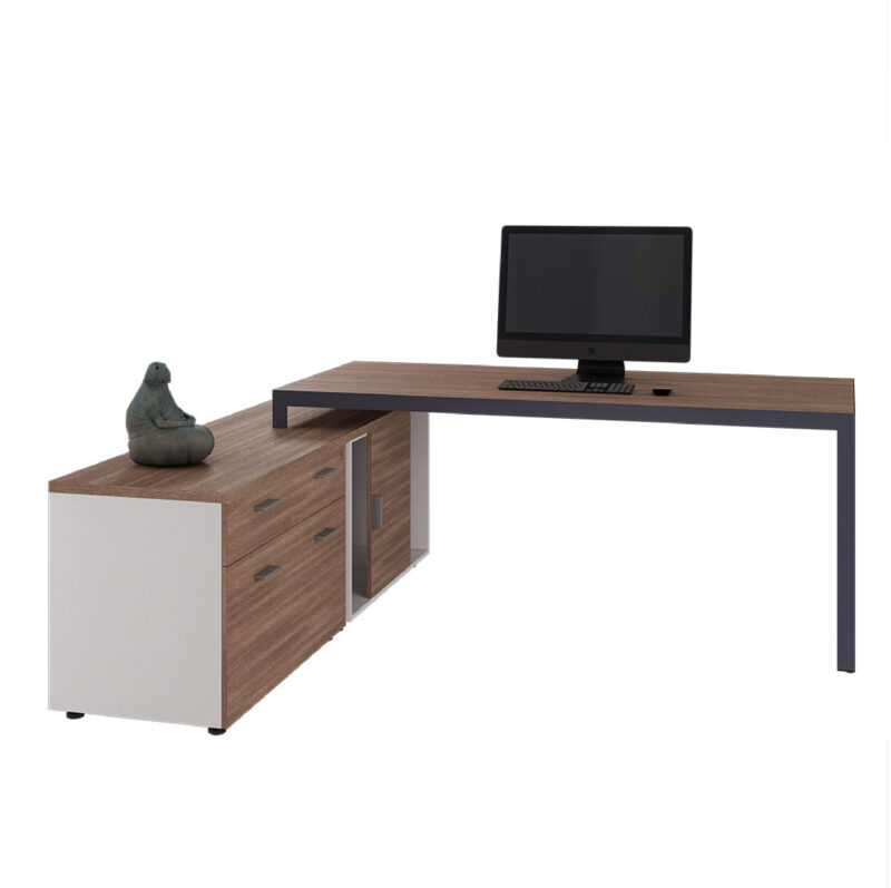 - Almacenamiento integrado: Credenza lateral para organización eficiente.