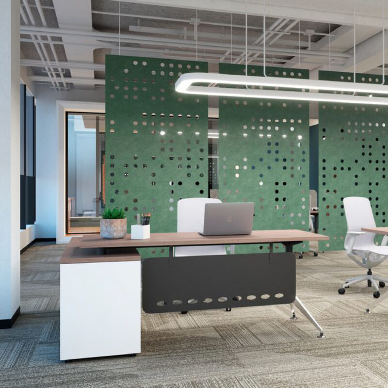 Dale un toque sofisticado y práctico a tu oficina con el Escritorio en L Credenza Lateral B/Chrome.