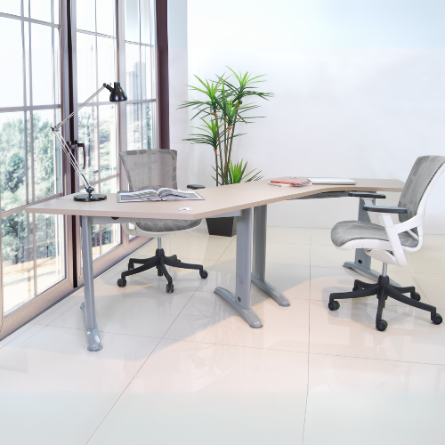- El Escritorio en L Aire 10 cuenta con un diseño innovador en forma de V, lo que maximiza el uso del espacio en oficinas pequeñas o medianas.