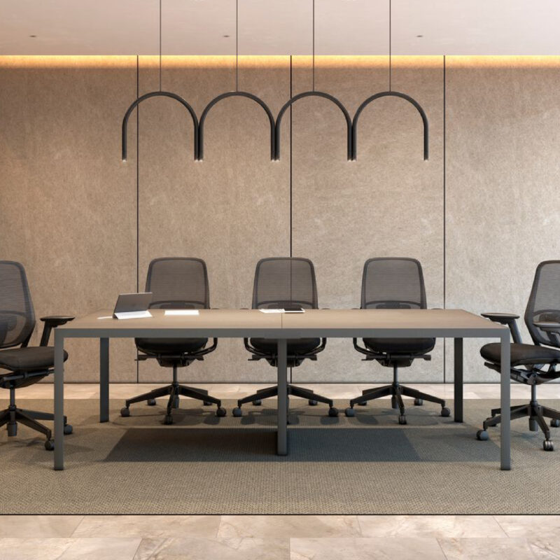 La Studio Mesa de Juntas es la elección perfecta para oficinas que valoran el diseño contemporáneo y la funcionalidad. Fabricada con una estructura perimetral de aluminio y patas de acero en color antracita, esta mesa ofrece resistencia, estabilidad y un estilo profesional que se adapta a cualquier entorno corporativo.