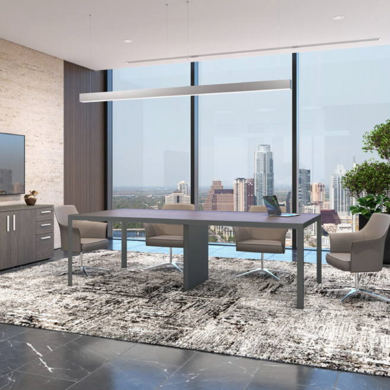 Transforma tu sala de juntas con la Studio Mesa de Juntas con Pata Central Electrificable.