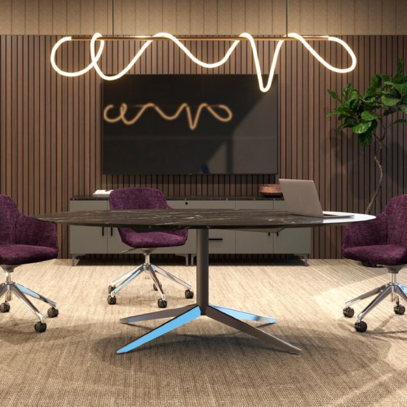 El Escritorio Ejecutivo/Mesa de Juntas Stella es la elección perfecta para oficinas y salas de juntas que buscan combinar funcionalidad y diseño. Su encantadora silueta ovalada, junto con su estructura estilizada, crea un ambiente sofisticado y profesional en cualquier espacio.